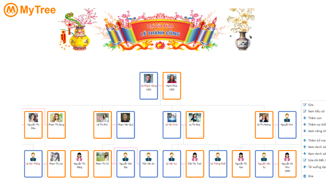 Cấu trúc cơ bản của một gia phả bao gồm thân cây, đại diện cho tổ tiên chung của gia đình, và các nhánh đại diện cho mỗi thế hệ con cháu. Thân cây và các nhánh thường được mã màu để chỉ giới tính hoặc các yếu tố quan trọng khác.